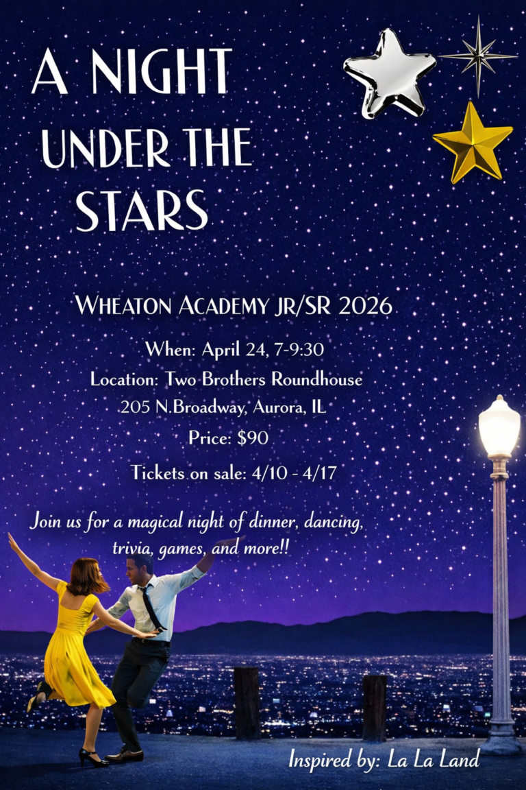 Wheaton Academy students may invite a date from other schools but need to complete and return a required guest form before purchasing tickets. Forms can be downloaded from the Jr/Sr webpage or may be picked up at the front office. (No college students or underclassmen)